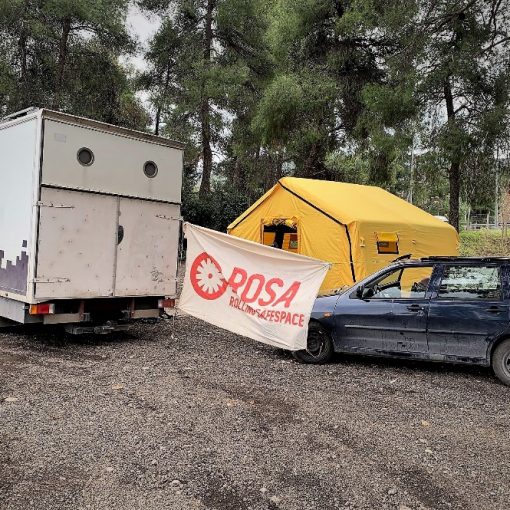 Auch wenn wir nun wissen, dass es diese Frauen* gibt, wir sie unterstützen möchten und unser ursprüngliches Konzept hierfür passend ist, bleiben einige Fragen offen. Seit Beginn der Projektentwicklung erfahren wir, dass es zunehmend schwieriger wird, in und um den Geflüchtetenunterkünften aktiv zu sein (es Bedarf einer Registrierung als griechische NGO, die oftmals über ein Jahr in Anspruch nimmt und außerdem einer Erlaubnis von der Verwaltung der Unterkunft, die nicht mehr so oft vergeben wird). Diese Hürden sind der Grund, weshalb es bislang wenig bis keine (feministische) Unterstützung in Geflüchtetenunterkünften gibt und der Großteil dieser Strukturen im Zentrum Athens arbeiten. Und genau deshalb wollen wir versuchen, den Rolling Safespace dorthin zu bringen. Wir glauben daran, dass es klappen kann, und sind bereits mit hierfür wichtigen Personen vernetzt, wodurch sich Möglichkeiten öffnen.